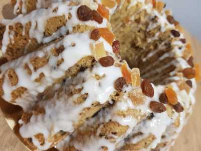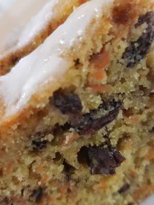 wilgotna babka a`la keks, lukrowana, z dużą ilością bakalii