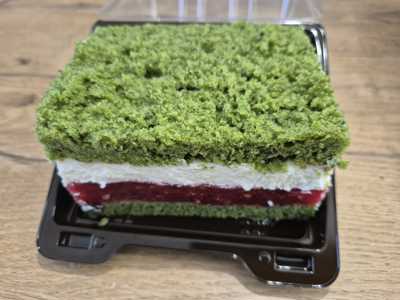 wyjątkowy wilgotny biszkopt szpinakowy z kremem na bazie bitej śmietany i mascarpone z żelowanymi owocami leśnymi. Żadnych sztucznych barwników!