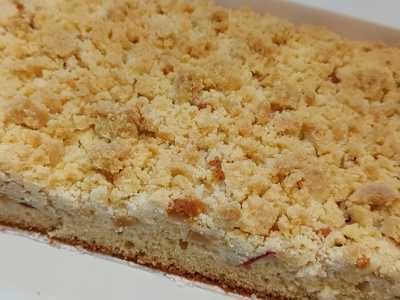 wilgotne ciasto na oleju z sezonowymi owocami i dużą ilością maślanej kruszonki