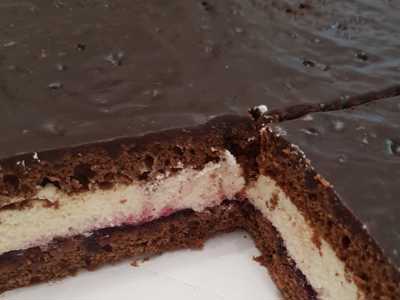 tradycyjne ciemne ciasto z nutą cynamonu, kremem waniliowym i czarną porzeczką
